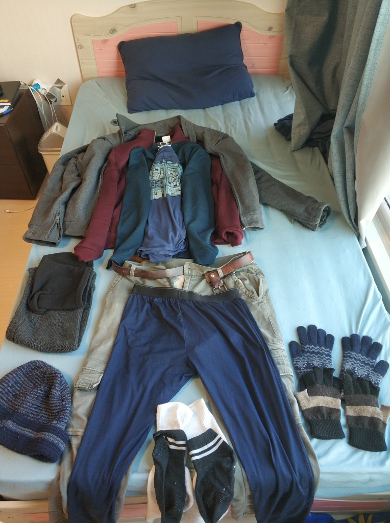 מישהו בעבודה סיפר לי שהחורף הנוכחי הוא החורף הכי חם שהיה בקוריאה ב100 ומשהו השנים האחרונות. ואכן, למרות שאני מרבה להגיד כמה קר פה, משמעותית פחות קר פה ממה שהכינו אותי נפשית (התחממות גלובלית FTW!). ועם זאת, בעוד שמינוס 2-3 זה אכן הרבה יותר טוב מהמינוס 10-12 שהכינו אותי אליו, זה עדיין קר, וקר משמעותית ממה שהדרום-רמת-גולני הזה רגיל אליו, גם אחרי עשור בירושלים. הבחירה[1] שלי לרכב את הדרך שלי למשרד מחזקת את הצורך להתמגן היטב. אי לכך, בבקרים קרים, לפני היציאה, יש את טקס הלבוש, שכולל-