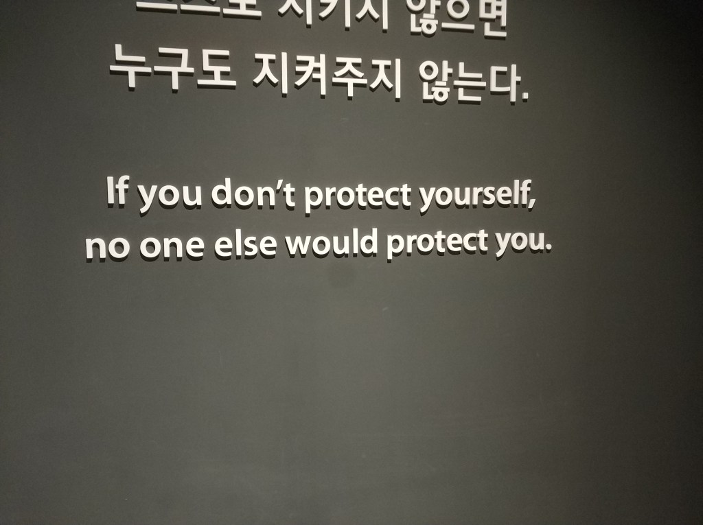 עכשיו, כמובן שכל זה הוא ספקולציות חצי מבוססות שלי, והתשובה ללמה ההיסטוריה התרחשה כמו שהיא התרחשה היא הרבה פעמים – כי ככה ההיסטוריה התרחשה. לקוריאנים מצידם יש את התשובה שלהם. בסוף התצוגה על מלחמת ויאטנם במוזיאון המלחמה, כאשר הם צריכים להתמודד עם העובדה שבסופו של דבר, כל המאמצים וההקרבה שלהם היו לחינם, ודרום ויאטנם נפלה לידי האויב הקומוניסטי, מופיע הטקסט הבא (התחביר המזעזע הוא במקור)-