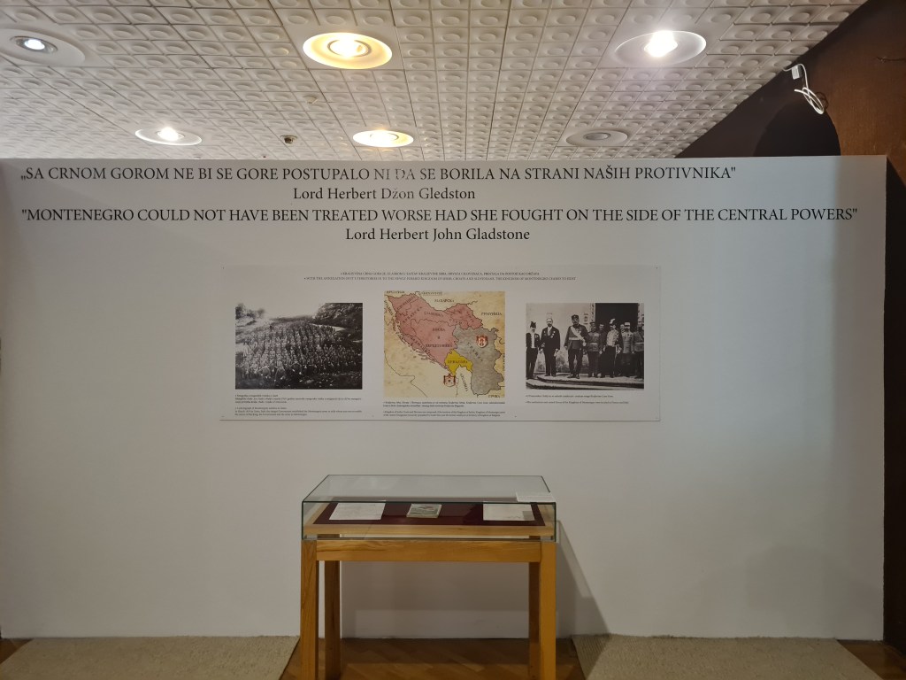 במלחמת העולם הראשונה, מונטנגרו נלחמה בצד של מדינות הברית (המונח "מדינות ההסכמה" מוזר מאוד בעיני. קיצר, בצד של בריטניה וצרפת). בהסכמי ורסאי המדינות המנצחות החליטו שבבלקן תקום ממלכה יגוסלבית בראשות שושלת קאראדגורדביץ' הסרבית. ולמרות שמונטנגרו נלחמה כמדינה עצמאית במהלך המלחמה, המעצמות החליטו להעניק אותה כפרס לסרביה. מה שעוד יותר מעליב הוא שהקרב הגדול של הצבא המונטנגרואי היה בMojkovac, שם הם בלמו את הצבא האוסטרו הונגרי באופן זמני, ואיפשרו לצבא הסרבי המוכה לסגת אל תוך אלבניה בצורה מוסדרת מבלי להתפורר לחלוטין. תחושת העלבון לראות את אותו צבא סרבי חוזר כצבא כובש לאחר המלחמה, היתה…. עמוקה. אולי הציטוט הכי בולט במוזיאון הוא של לורד גלאדסטון, שאמר שמונטנגרו לא יכלה לקבל יחס גרוע יותר לו היא היתה בצד המפסיד.