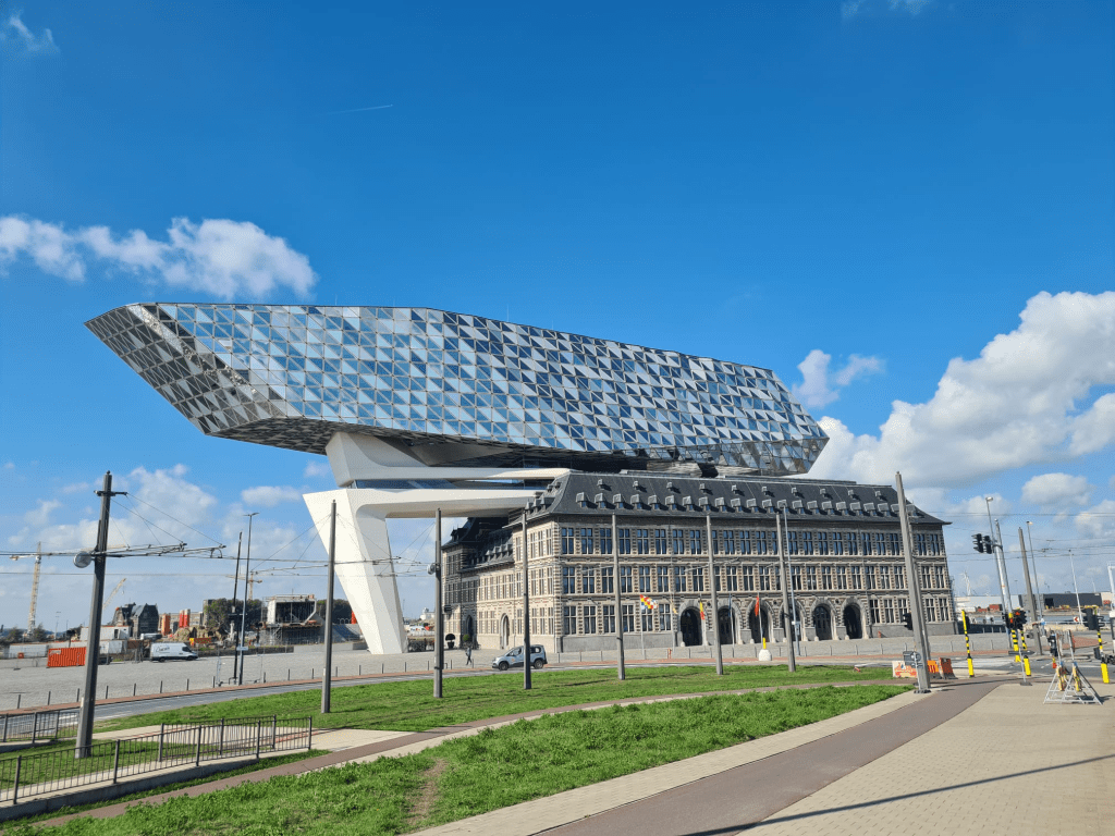 The fact that the port's visitor center was so fascinating impressed was equally improbable as the fact that the port authority administration building was one of the most beautiful buildings I'd seen on the trip so far. It's less surprising when you find out it's a building designed by Zaha Hadid. I have a hunch that the competition between Rotterdam and Antwerp pushed them to try to build the most impressive administration building they could , to impress potential customers and give them the feeling that Antwerp is an innovative and modern port (because they are already at the apex of unloading and loading time efficiency, so making an impression is all that remains, added top the fact that Rotterdam is full of cool buildings). Steph, as someone who works in the marketing department, told me that at the moment, with all the global chaos in the supply chain and the never-ending traffic jams in the ports, it doesn't really matter – the ship owners just go to the port that has free space at the time, to unload the goods, and it doesn't matter to them how much cool the place looks .