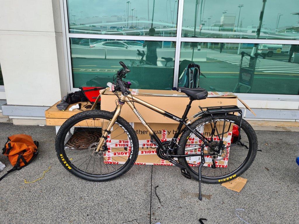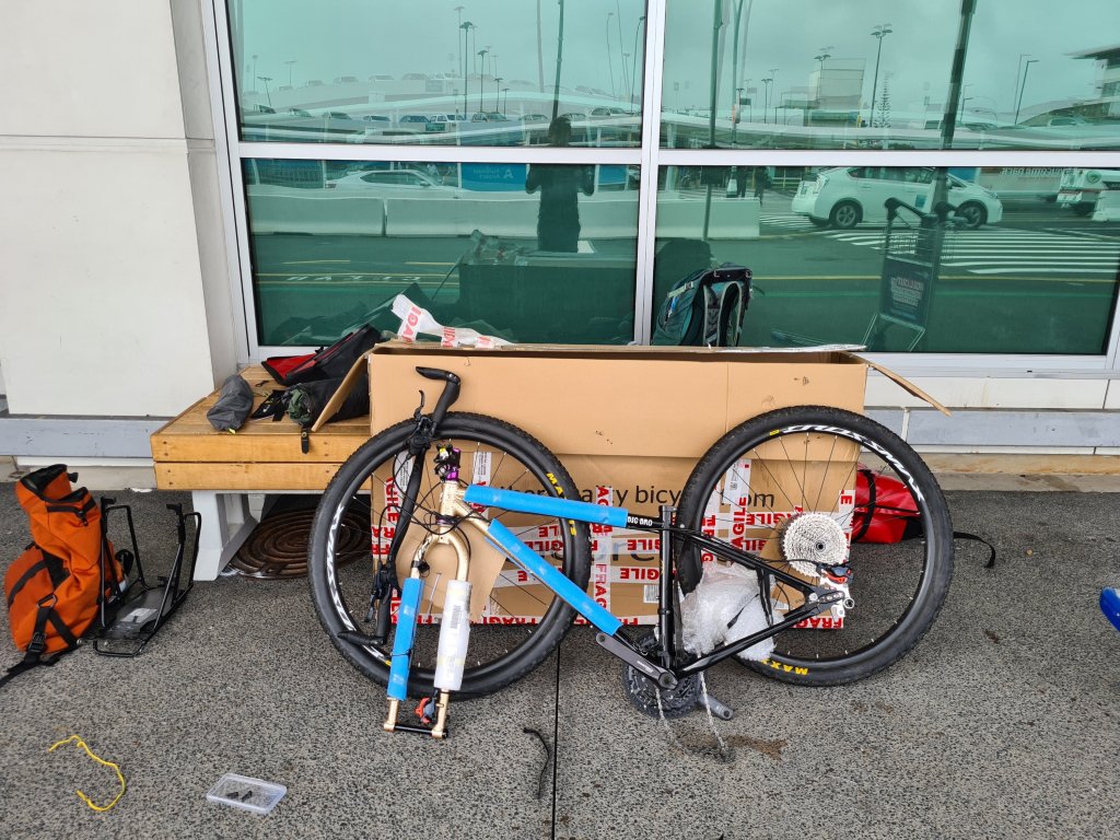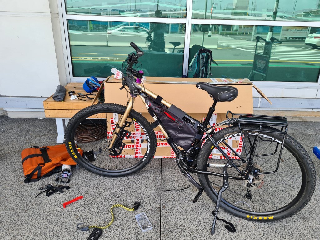 מצאתי פינה מוגנת מרוח (השמועות על עמדת אופניים מסודרת בשדה תעופה התבררו כמופרכות) וביליתי כמה שעות טובות בהרכבת האופניים, כולל פדלים. משם רכבתי אל תחנת הרכבת (כמה ק"מ טובים מהשדה, אין רכבת ישירה משום מה) ואל כריסטופר, המארח שלי באוקלנד מוורשאוורס.