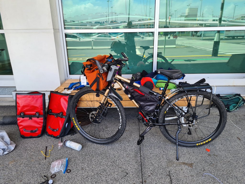 למזלי הייתי לפני הקונקשן בלוס אנג'לס ובזמן ההמתנה העליתי פוסט לקבוצת פייסבוק של רוכבי אופניים בניו זילנד, ושאלתי אם מישהו במקרה מגיע מחר לשדה תעופה באוקלנד ויכול להקפיץ לי פדלים. עוד לפני שעליתי למטוס כבר התחלתי לקבל תשובות והצעות, ולמחרת, בבוקר סגרירי למדי, פגשתי את ניק מחוץ לשדה התעופה, אליו הוא רכב במיוחד על האופנוע שלו להעניק לי פדלים. אני חושב שאי אפשר לבקש קבלת פנים מוצלחת יותר.