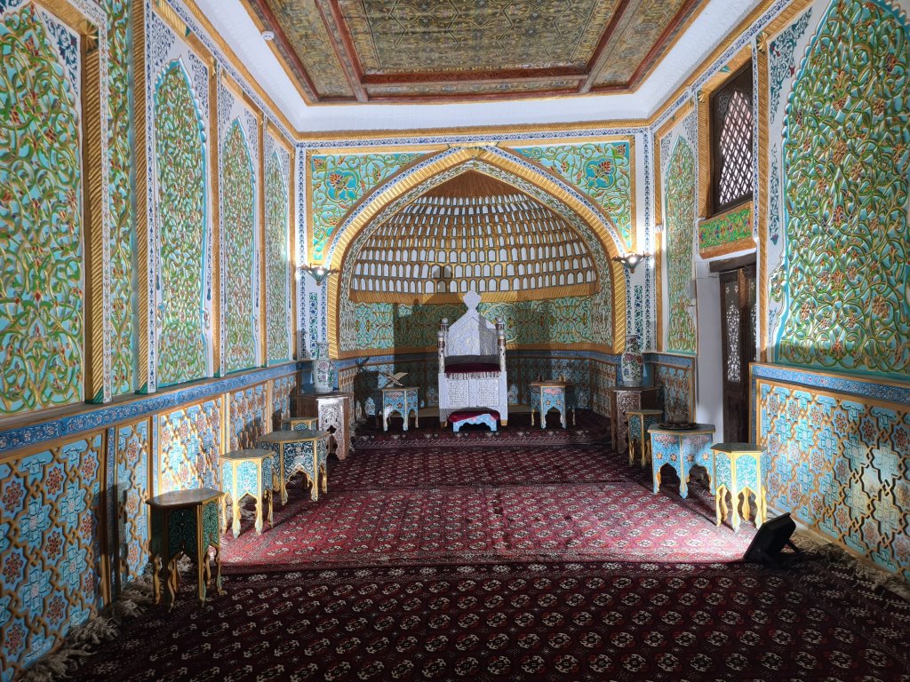 אני חושב שעבורי הרגע שהאסימון הזה באמת נפל היה כשנכנסתי לthrone room של החאן של חיוה וגיליתי שכס המלוכה שם הוא העתק של הכיסא המקורי. כי המקורי יושב במוזיאון ההרמיטג' בסנט פטרסבורג, איפה שהוא נמצא מאז הכיבוש הרוסי של חיוה בסוף המאה ה19, ולא, אין להם שום כוונה להחזיר אותו.